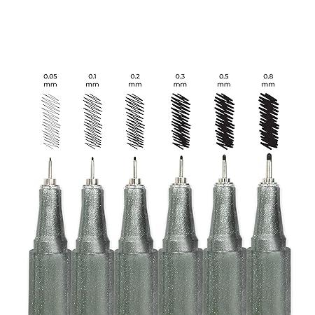 6 Precision Nib Sizes for Versatile Use – Includes 0.05, 0.1, 0.2, 0.3, 0.5 & 0.8 mm tips, ideal for technical drawing, sketching, outlining, lettering, journaling, manga, and bold strokes.